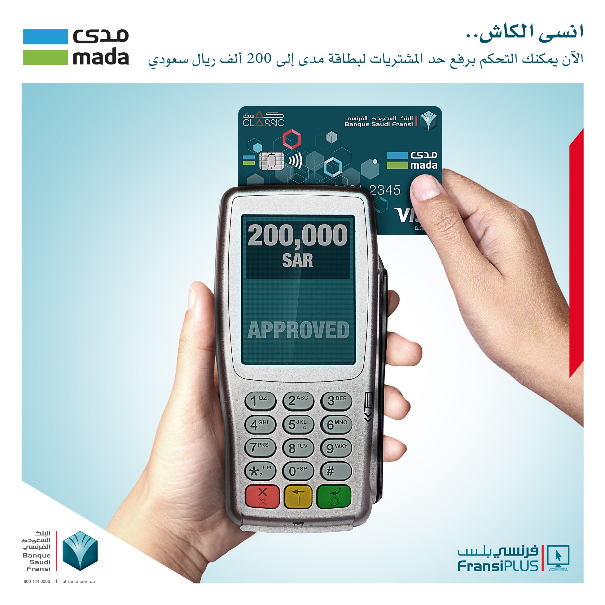 البنك السعودي الفرنسي Tren Twitter يمكنك الآن التحكم برفع الحد اليومي لمشترياتك عبر نقاط البيع والتسوق الإلكتروني باستخدام بطاقة مدى حتى ٢٠٠ ألف ريال عن طريق فرنسي بلس Https T Co Ni4k59x9d9