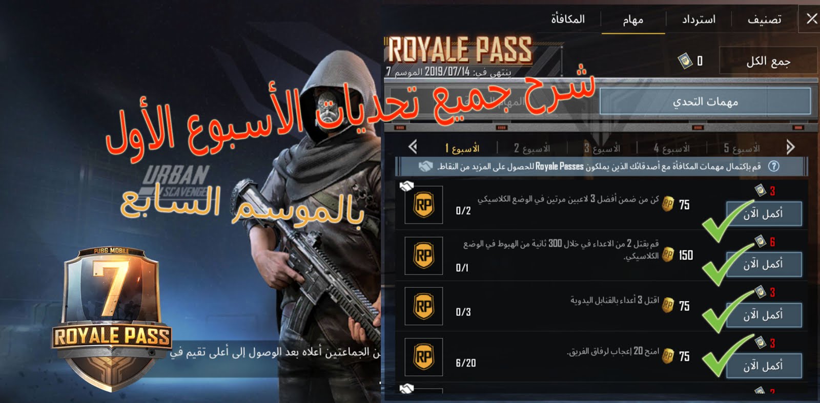 عمل مهمات الأسبوع الأول السيزون السابع ببجي موبايل رويال باس