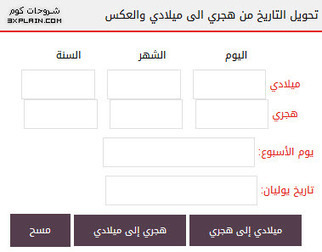 تحويل التاريخ من ميلادي الى هجري محول التاريخ