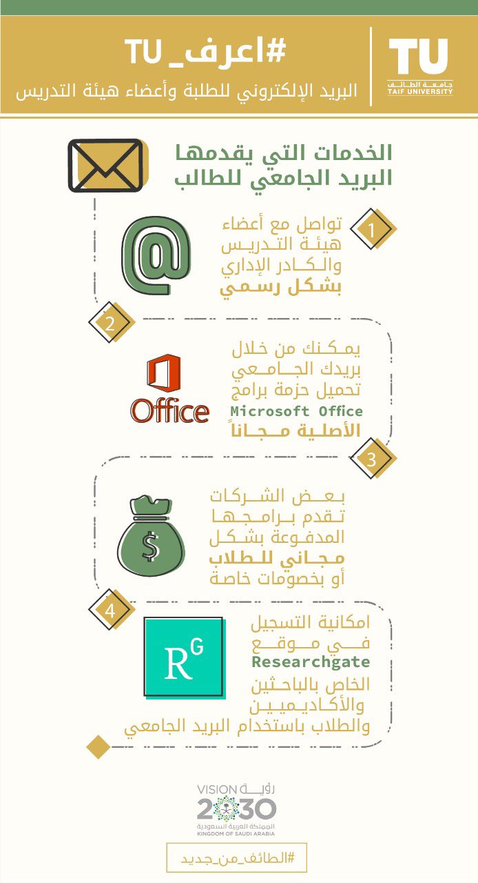 جامعة الطائف En Twitter انفوجرافيك الخدمات التي يقدمها البريد الجامعي لطلاب وأعضاء هيئة التدريس بـ جامعة الطائف اعرف Tu الطائف من جديد Https T Co Toobxvosrq
